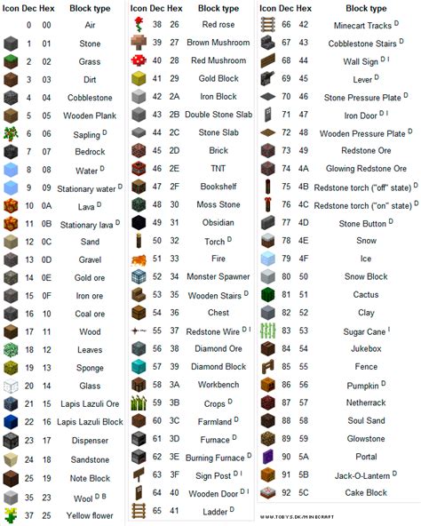 all minecraft block ids. There are any references about all minecraft block ids in here. you can look below.