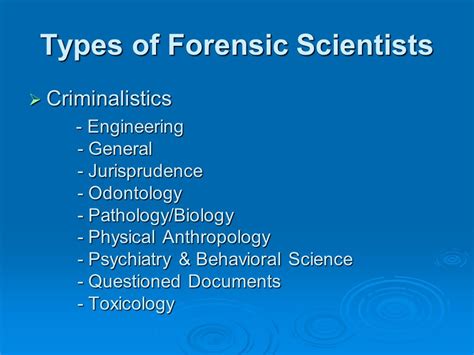 all types of forensic scientists