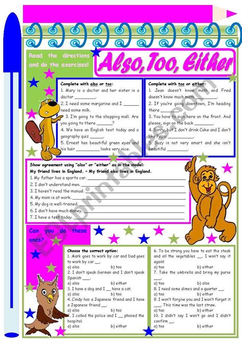 also too either exercises pdf