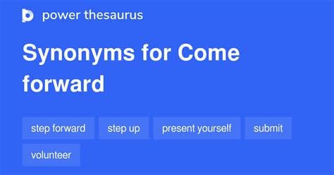 come forward meaning synonym. There are any references about come forward meaning synonym in here. you can look below.