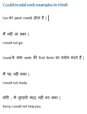 could sentences examples in hindi. There are any references about could sentences examples in hindi in here. you can look below.