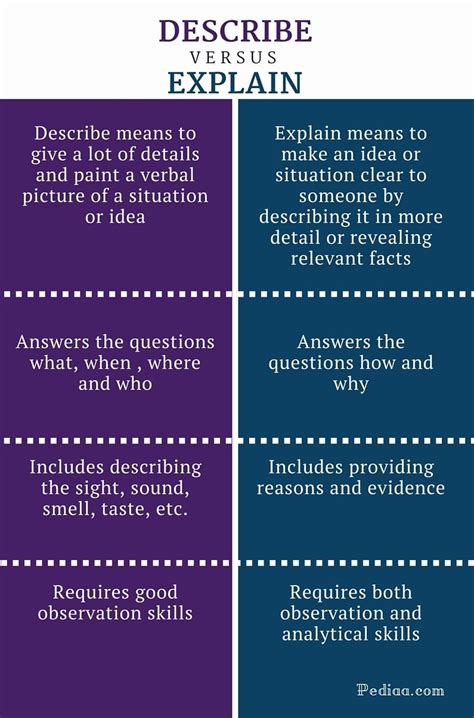 difference between describe explain and discuss