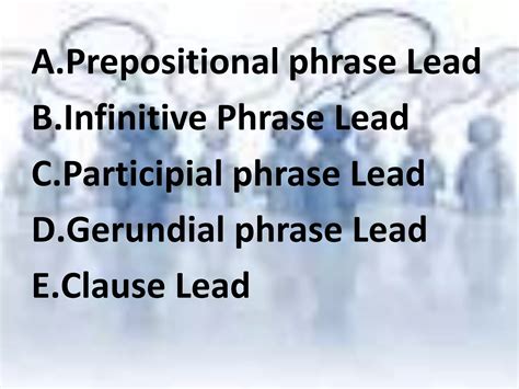 example of prepositional phrase lead. There are any references about example of prepositional phrase lead in here. you can look below.