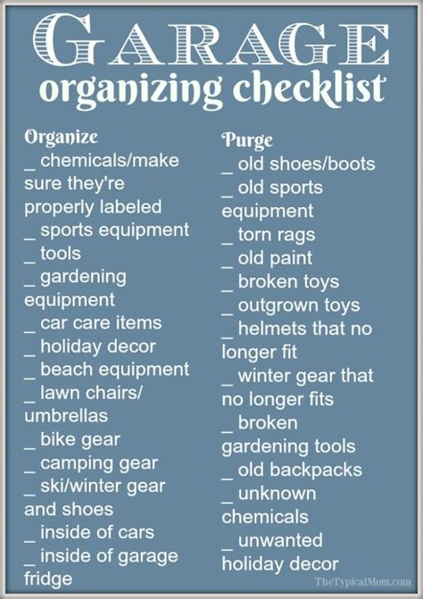 garage items list