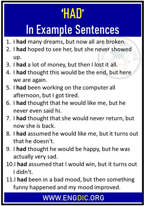 had example sentence. There are any references about had example sentence in here. you can look below.