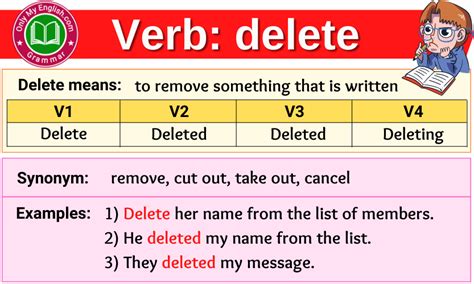 is delete a verb. There are any references about is delete a verb in here. you can look below.