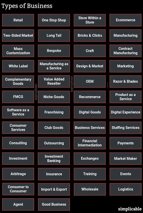 list of different business types