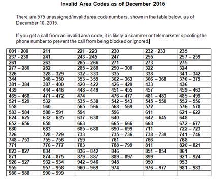 list of invalid area codes