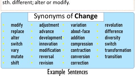 modify change synonym. There are any references about modify change synonym in here. you can look below.