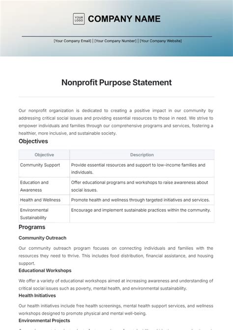 nonprofit purpose statement examples irs