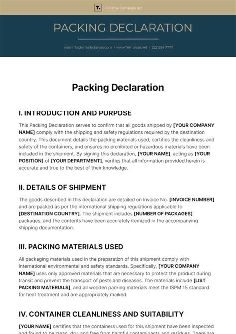 packing list declaration