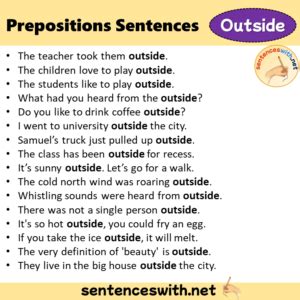 preposition outside examples sentences. There are any references about preposition outside examples sentences in here. you can look below.