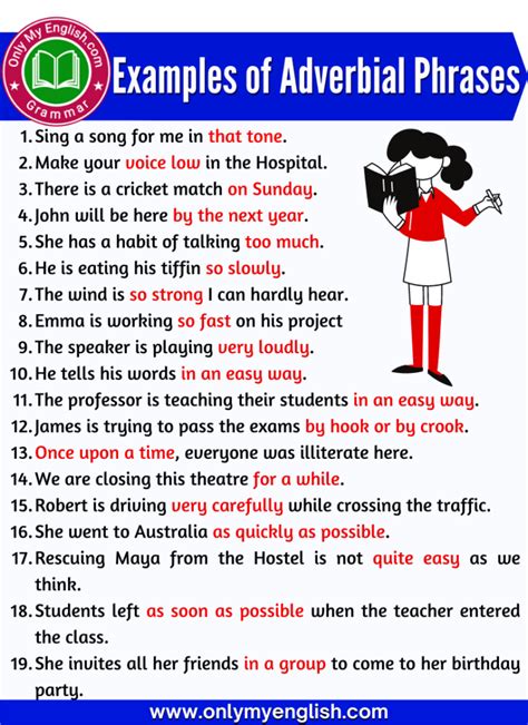 some example of adverbial phrase. There are any references about some example of adverbial phrase in here. you can look below.