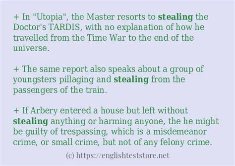 stealing example sentences. There are any references about stealing example sentences in here. you can look below.