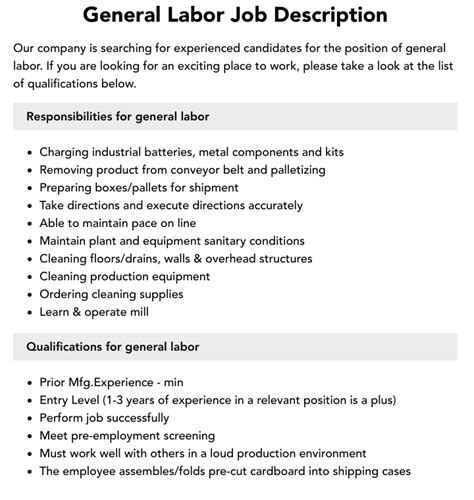 what does general labor include. There are any references about what does general labor include in here. you can look below.
