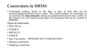 what is null constraints in dbms. There are any references about what is null constraints in dbms in here. you can look below.